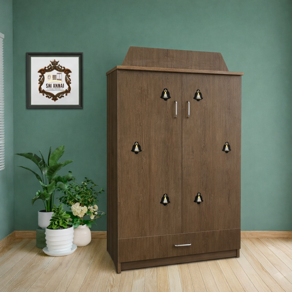 • Open or closed designs with shelves to hold idols, lamps, incense holders, and other pooja essentials.