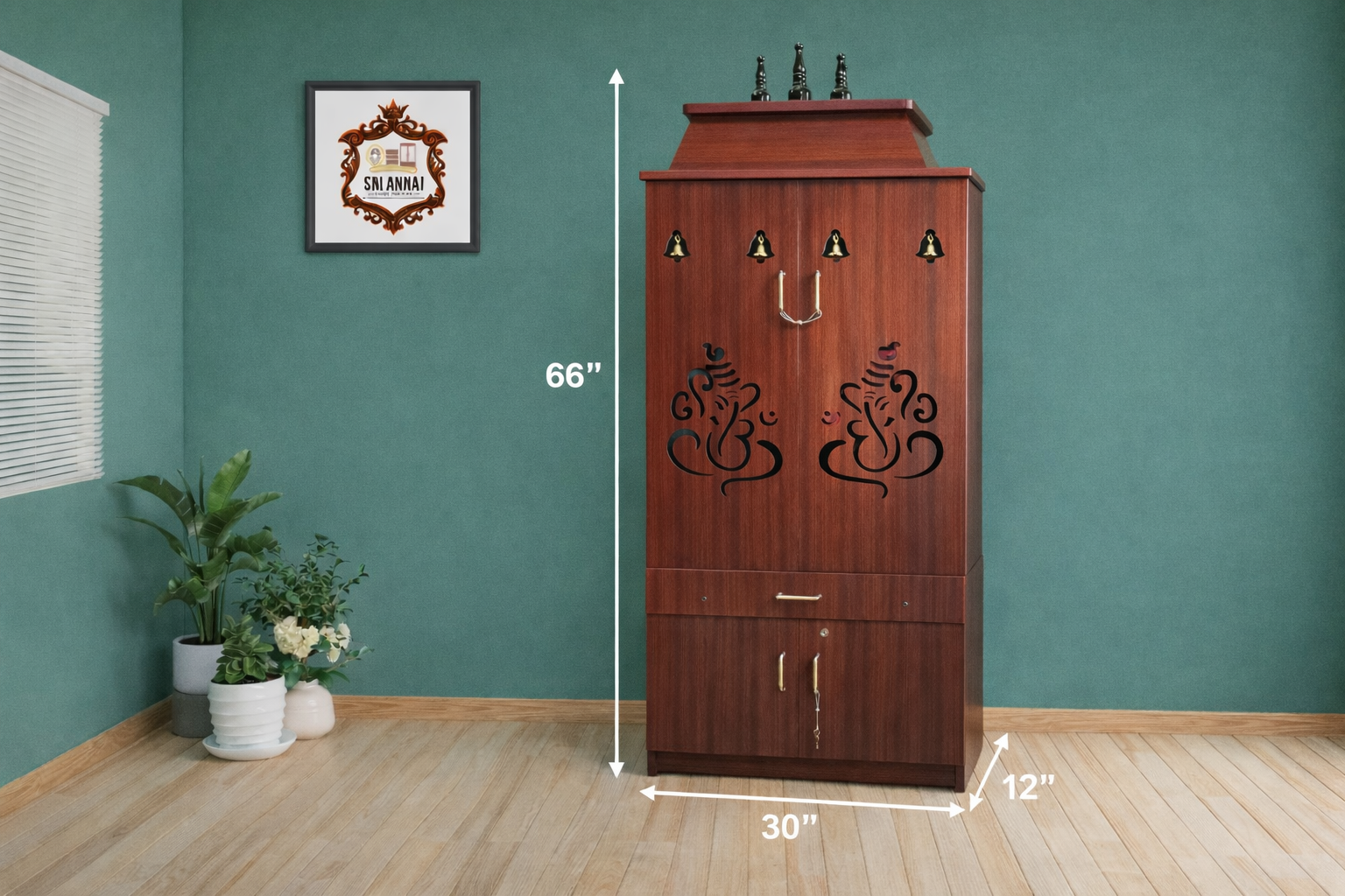 • Dedicated Space for Vinayagar Worship: It provides a specially designed platform that accommodates the Lord Ganesh idol along with all essential pooja items, creating a focused and respectful worship area.